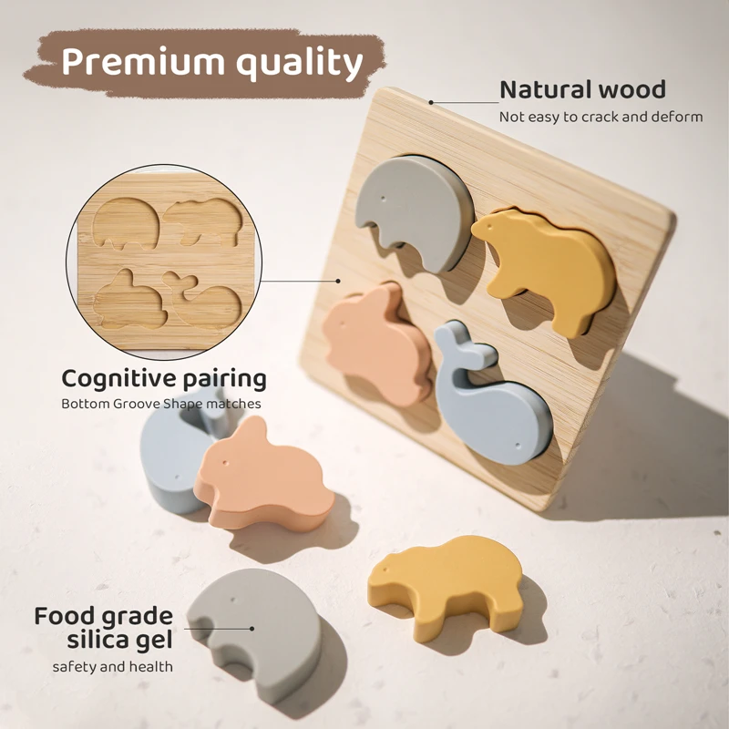 Детские деревянные головоломки животные формы силиконовые прорезыва...