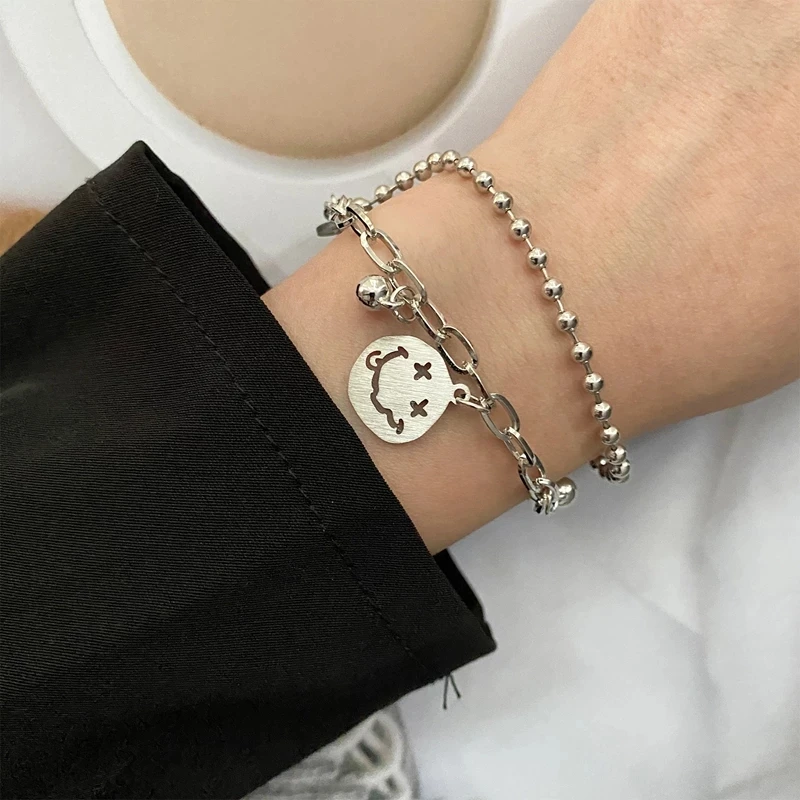 Винтажные двухслойные браслеты-цепочки для женщин, девочек, мальчиков, подвески в стиле хип-хоп СО смайликом, модные браслеты 2021, трендовая бижутерия, подарок