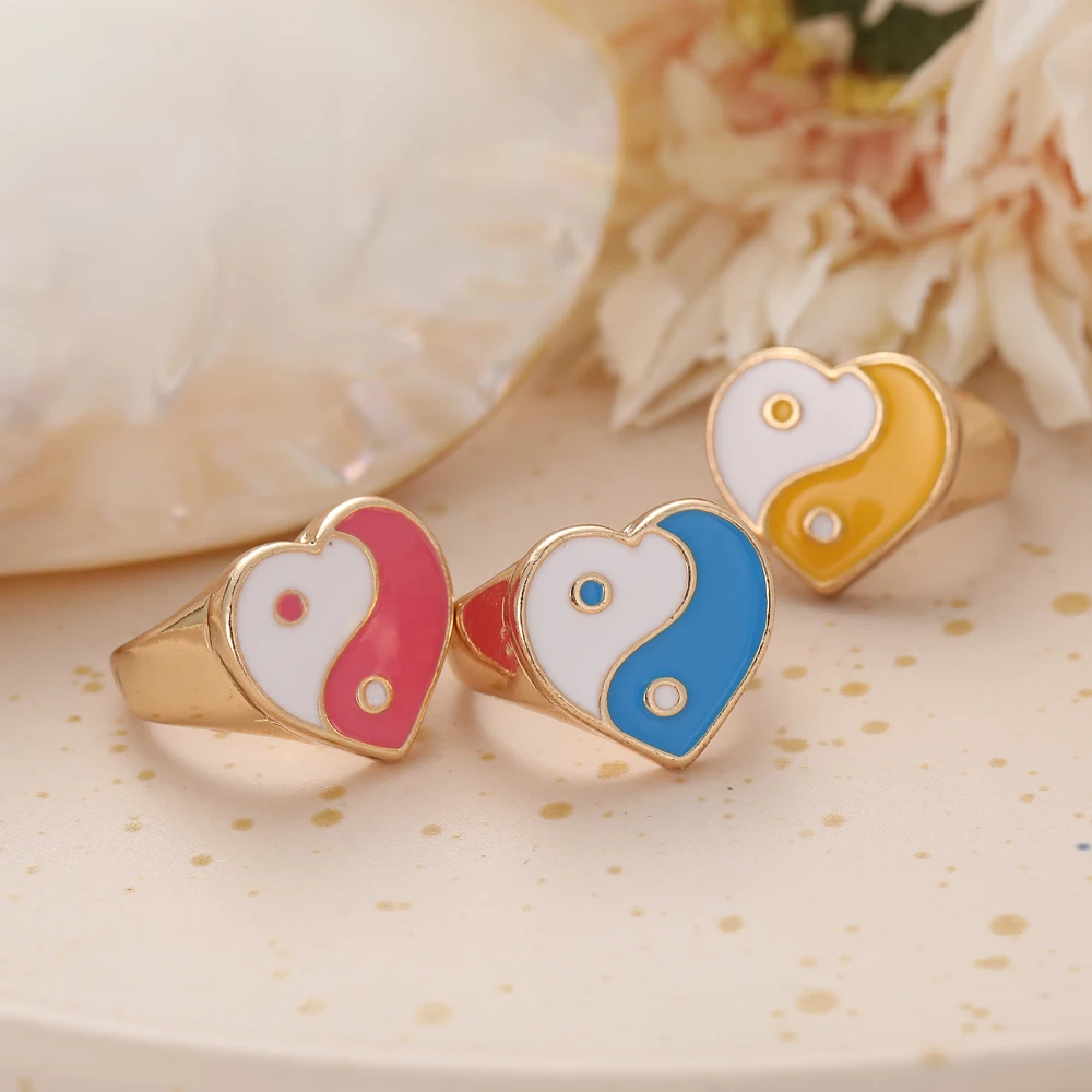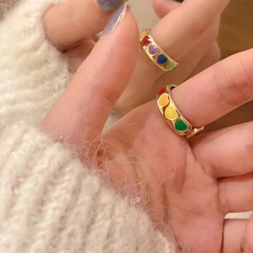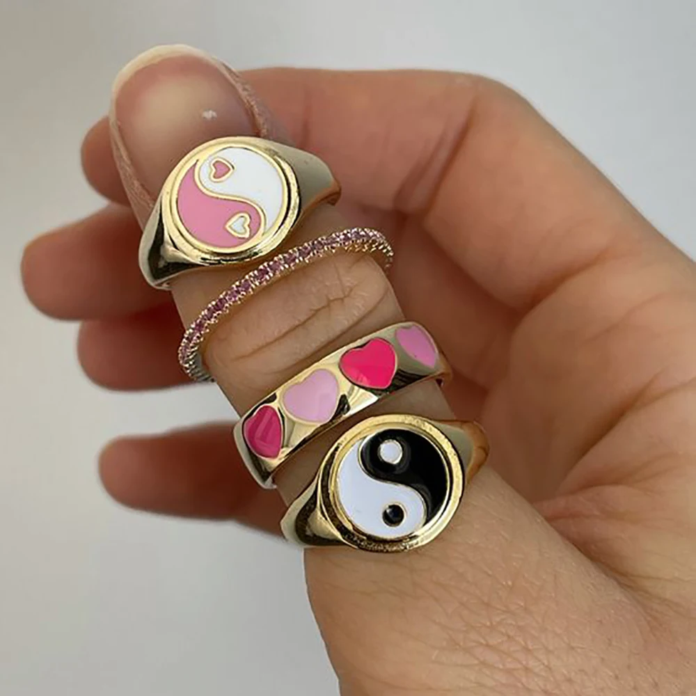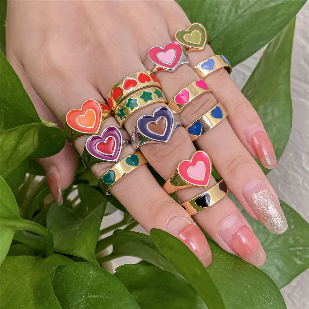 Кольцо женское регулируемое, яркое, с блестящими сердечками, Y2k, кольцо персикового цвета с сердцем