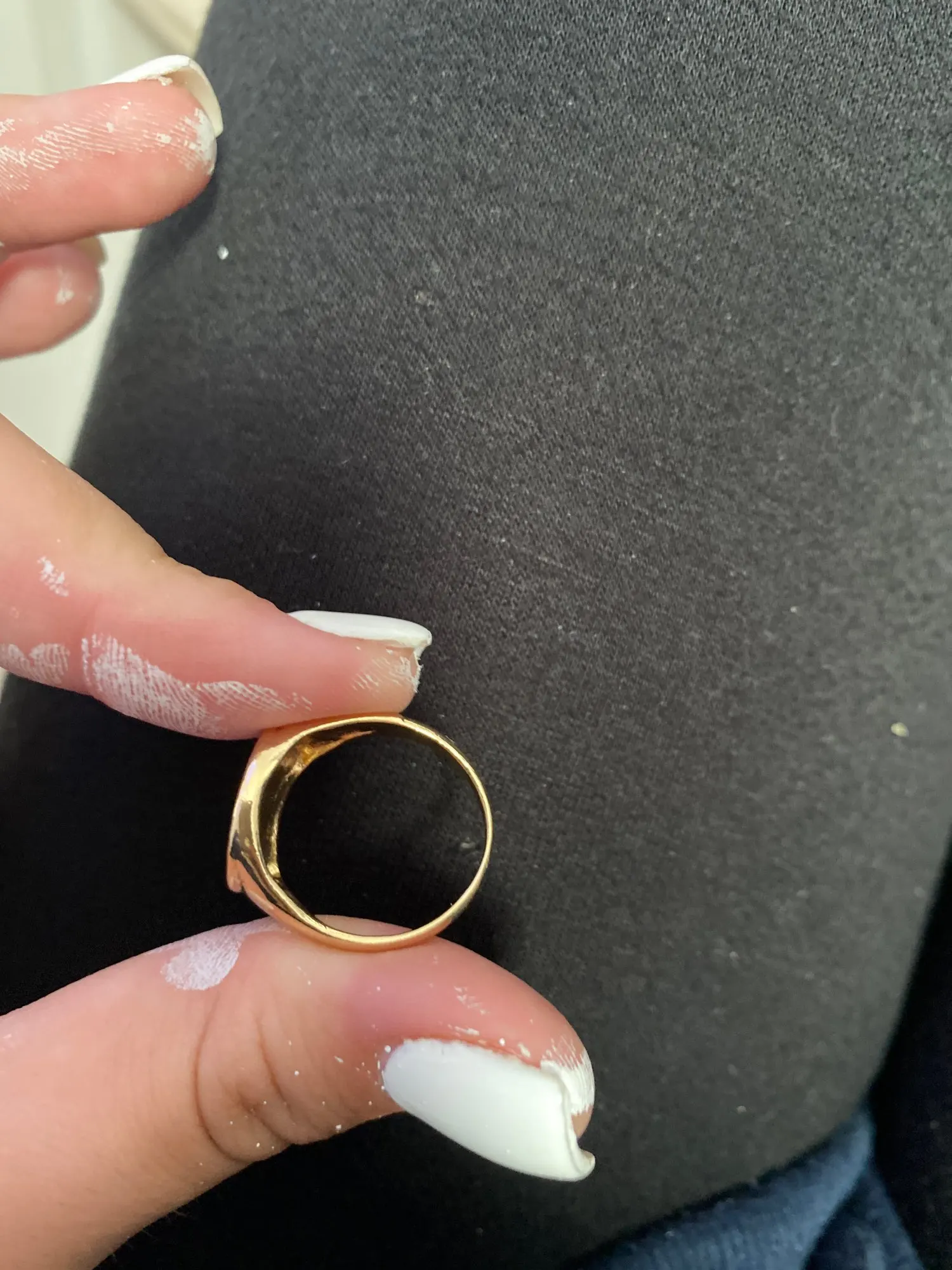 Очень красивое кольцо, выглядит дороже чем на самом деле и очень трендовое, стильное. На мои худые пальцы большое, поэтому ношу только на большом, и то чуть-чуть спадывает. Поэтому учитывайте размер. Отправили и пришло быстро. У нас бы такое стоило в 10 раз дороже)