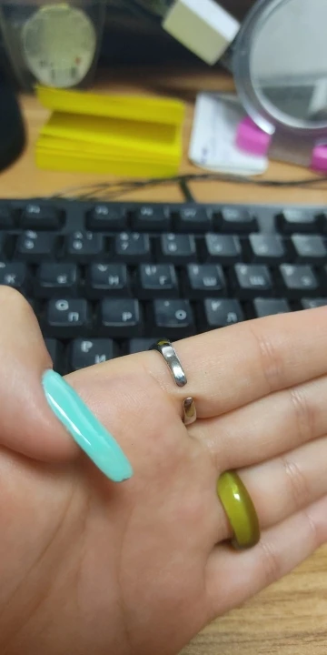 крч колечко вопше бомба і регулюється і все тікі певно треба покрити лаком для нігтів бо може лишати темні сліди а такккк просто пушка