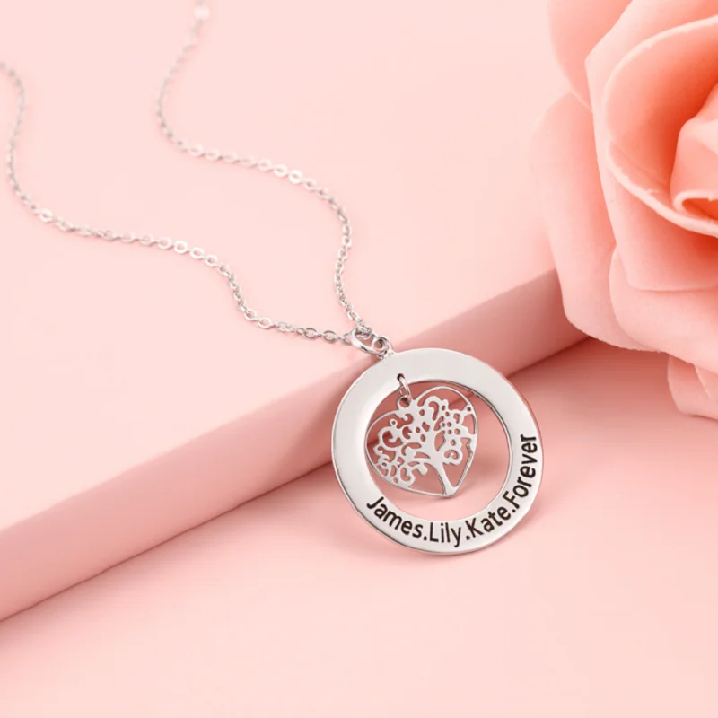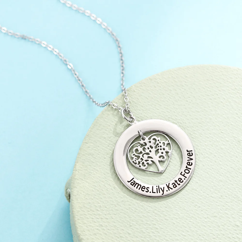 Модное ожерелье из дерева жизни с гравировкой очаровательное имя круглое ожерелье на заказ подвески на цепочке Подарки Для Семьи ожерелье