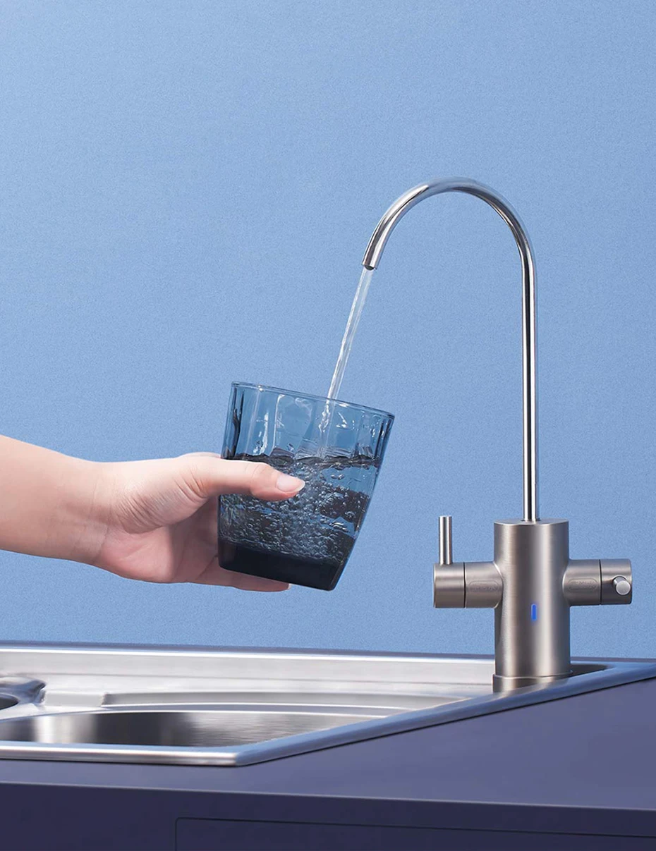 Водоочиститель H600G Xiaomi Mi установлен под столешницей и может производить большое количество чистой питьевой воды с помощью водопроводной воды. До 99,9 бактерий, тяжелых металлов и антибиотиков в водопроводной воде могут быть удалены, а также до 99,7 органических веществ. Пейте воду так же чистой, как бутилированная вода и живите здоровой жизнью! Прекрасно скрытый, очиститель воды не повлияет на стиль украшения, и вы можете следить за качеством воды в вашем доме в режиме реального времени, взглянув на отмеченное наградами приложение. Значение TDS также отражается на цвете СВЕТОДИОДНЫЙ светильник на смесителе.