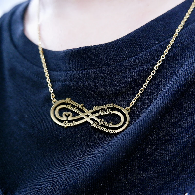 Название: ожерелье персонализированный Бесконечность имя кулон индивидуальные Золотое сердце табличка ожерелье Очаровательная Женская обувь на День святого Валентина, ювелирные изделия в качестве подарка
