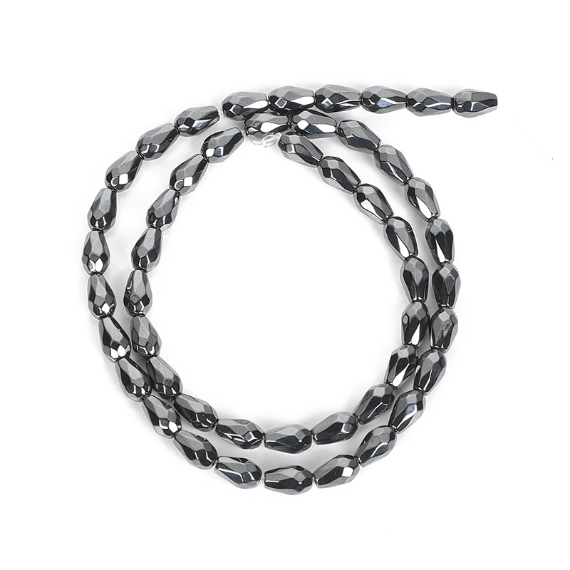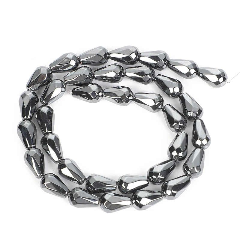 Граненые бусины в форме капель воды из черного гематита, бусины из натурального камня, бусины с отверстием для изготовления ювелирных изделий, браслетов, аксессуары сделай сам