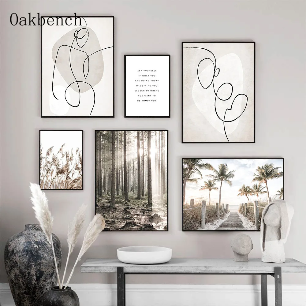 Постеры с абстрактным изображением человеческих линий, Речной корабль, Картина на холсте, настенные картины с изображением леса для гостиной, украшения дома