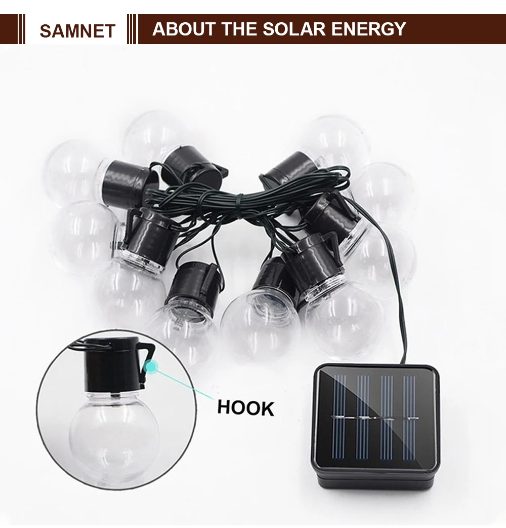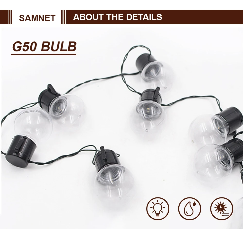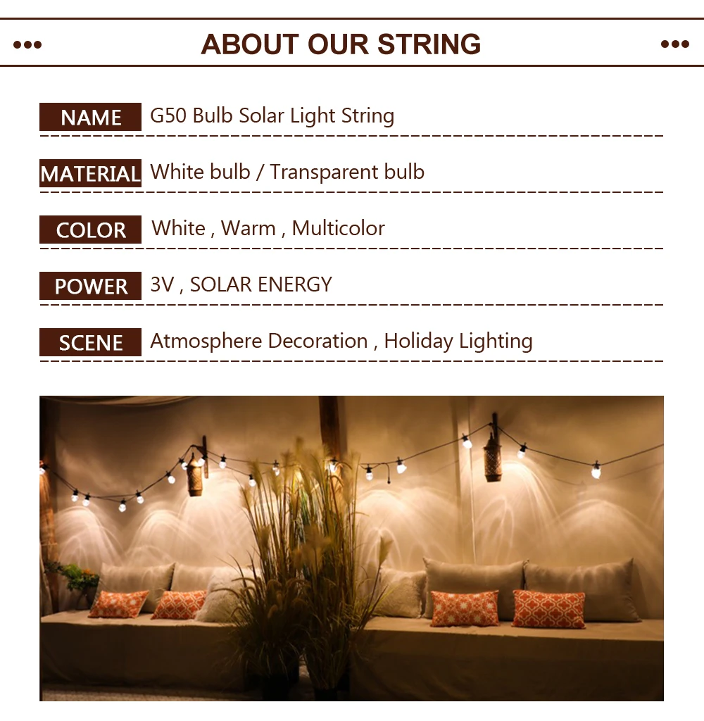 Уличная гирлянда, светодиодная уличная гирлянда с лампочками G50 на солнечной батарее в качестве Рождественского украшения, лампа для дома, внутреннего праздничного освещения