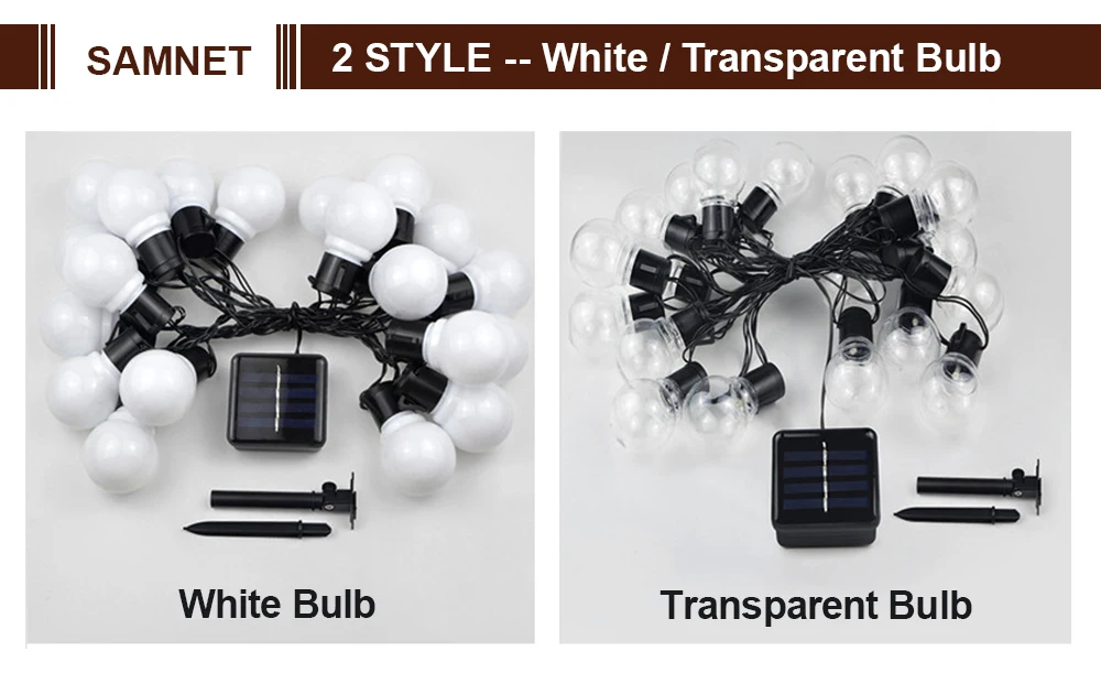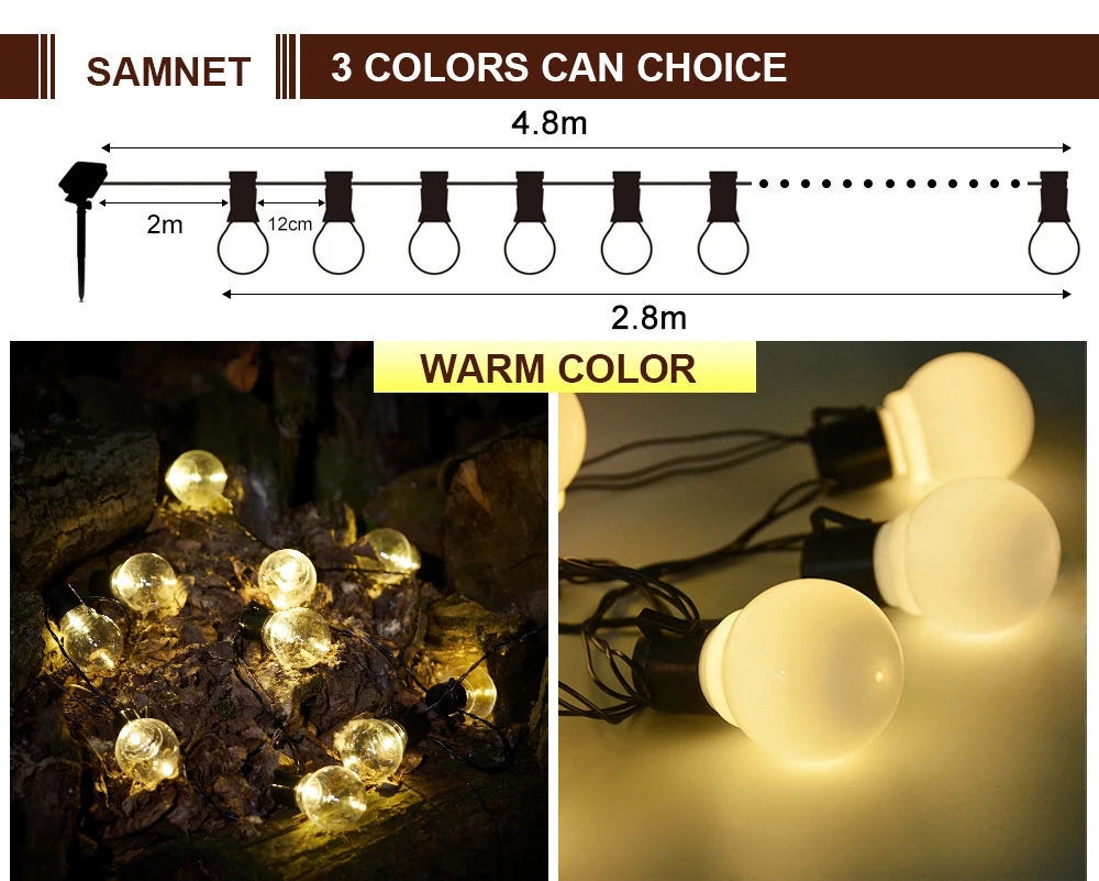 Примечание♥Этот лампочка-светильник имеет 2 стиля-белая лампочка/прозрачная лампочка.Особенности★Высокая яркость; низкий расход энергии.★Наружный и внутренний декоративный светильник.★Изготовлен из высококачественного материала, прочный для ежедневного использования.★Непрерывная работа через солнечную энергию.★Энергосберегающие и экологически чистые.★Длительный срок службы: более 50000 часов.★Применение для украшения вашего дома, сада, Рождества, вечерние, свадебные и т. Д.★Светильник на солнечной батарее является водонепроницаемым и может использоваться на открытом воздухе.Параметры☀Название бренда: SAMNET☀Тип товара: G50 лампа Солнечный струнный светильник☀Светодиодные строки Длина: 3,5 M / 5M/6,5 M☀Количество СВЕТОДИОДНЫЙ: 10 светодиодный/20 светодиодный/30 светодиодный☀Излучаемый Цвет: Теплый/белый/многоцветный☀Источник питания: солнечная энергия☀Уровень водонепроницаемости: IP65 водонепроницаемый