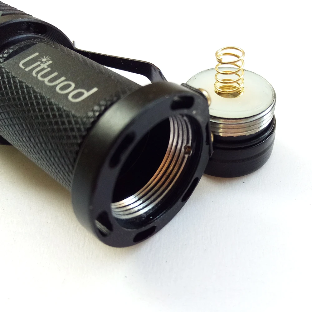 Фонарик светит и на обычных щелочных АА пальчиковых и не болтается там пружинка минуса длинная и хорошо держит обычную батарейку. Но с АА светит слабовато. Надо ставить литий.