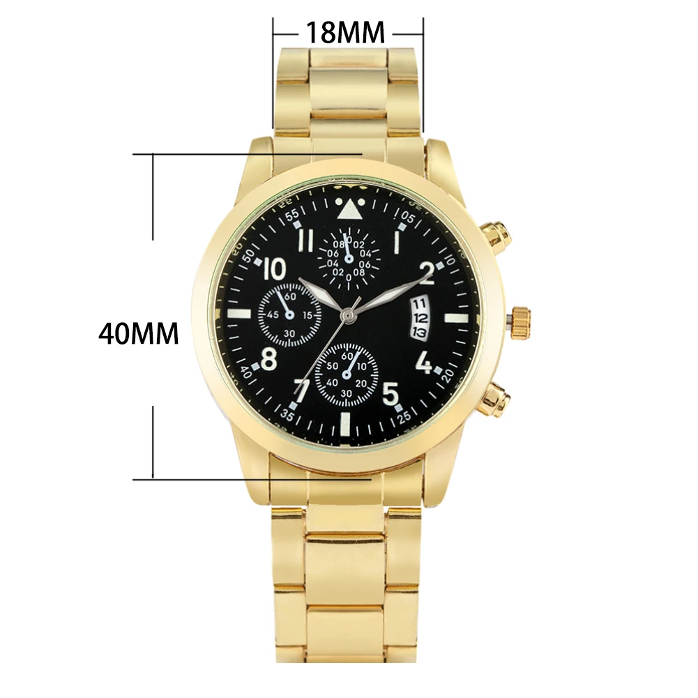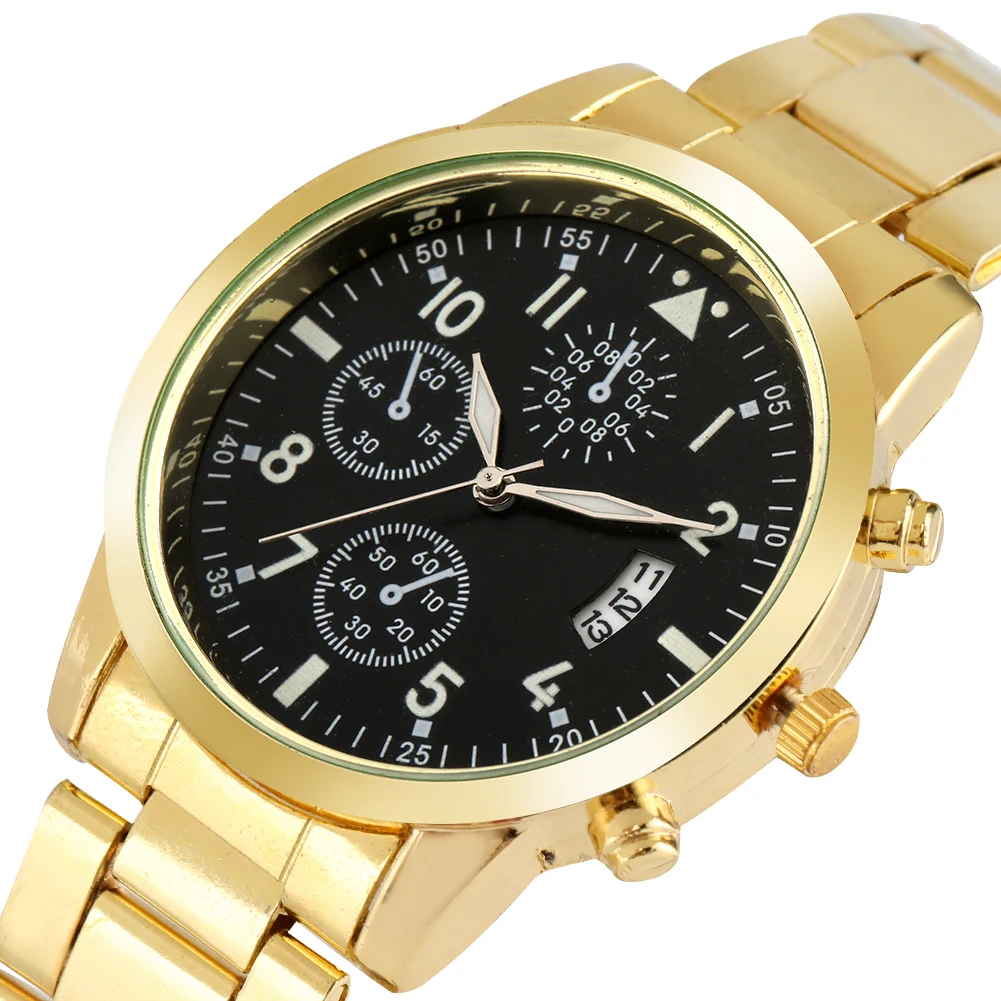 Роскошные золотые часы, мужской золотой браслет, подарочный набор, кварцевые часы с календарем и циферблатом, высококачественный браслет из нержавеющей стали для мужа