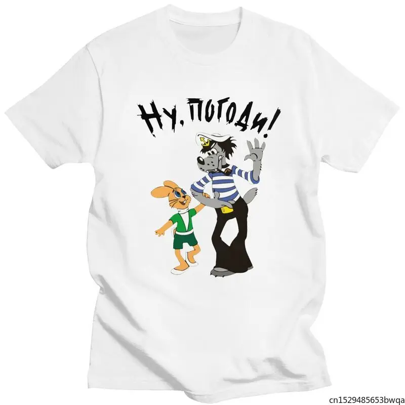 Мужские футболки Nu Pogodi с волком и кроликом, футболки с коротким рукавом, стильная футболка, летние Смешные русские Мультяшные футболки, топы в подарок