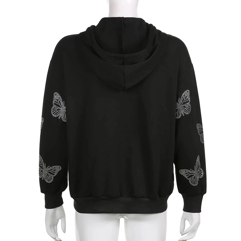 Artsu черный Y2K осенние толстовки для женщин с бабочками и бриллиа...