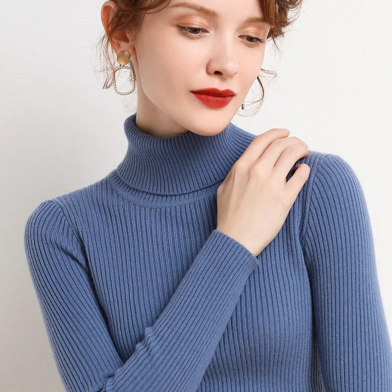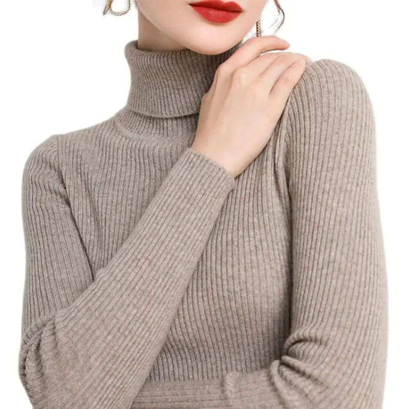 Abrini женский Зимний вязаный свитер в рубчик с высоким воротником Облегающие джемперы пуловеры с длинным рукавом Повседневный свитер для женщин осень 2021