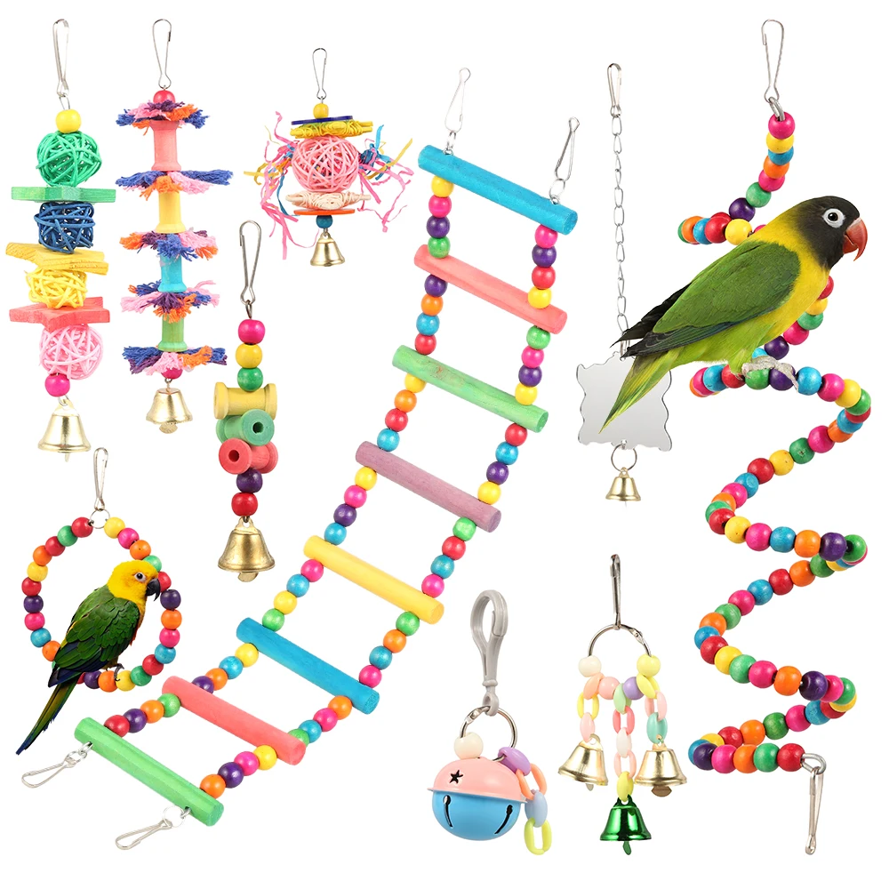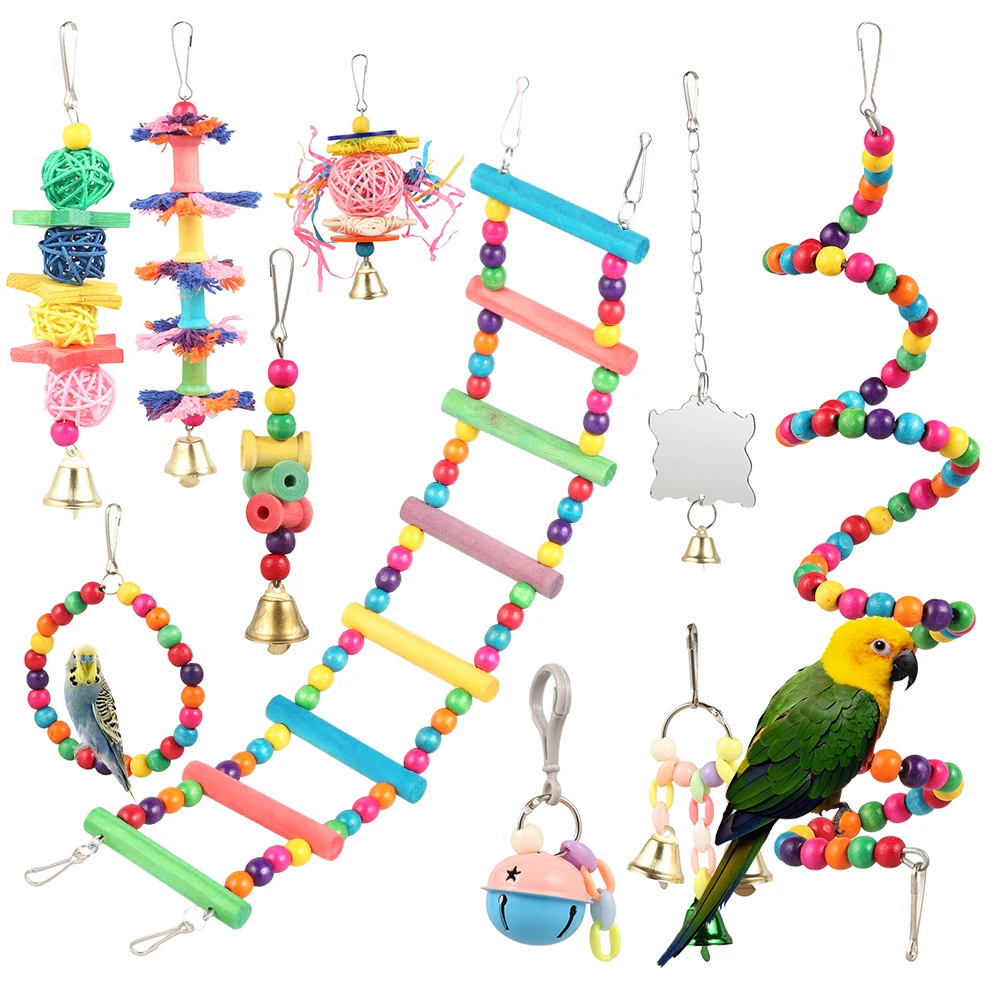 10 шт., деревянные игрушки-колокольчики для попугаев