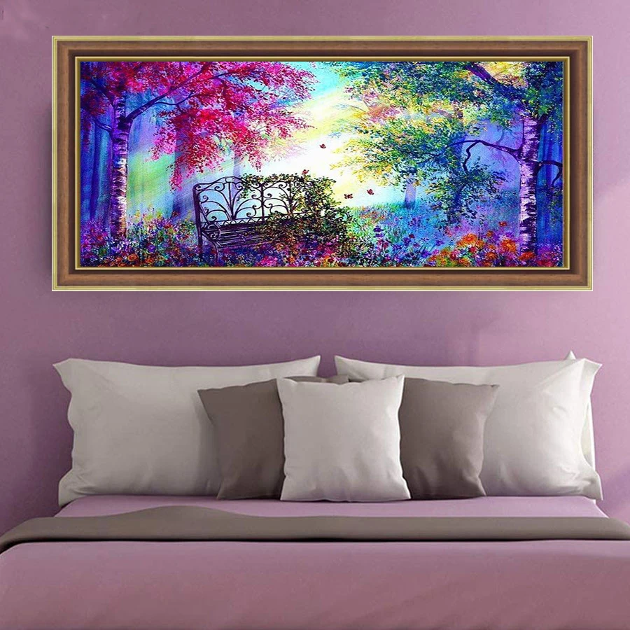 Алмазная живопись 5D сделай сам, Алмазная мозаика с изображением цветного леса, круга, квадрата, стразы