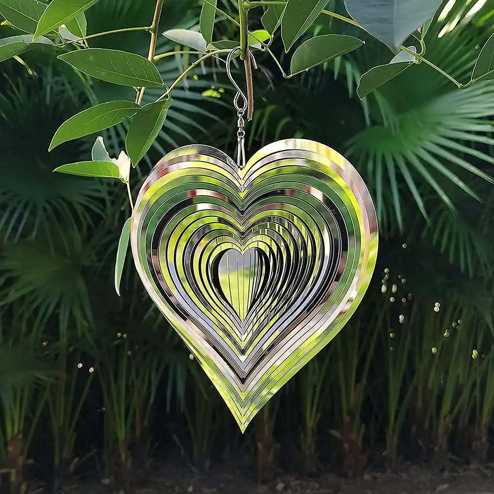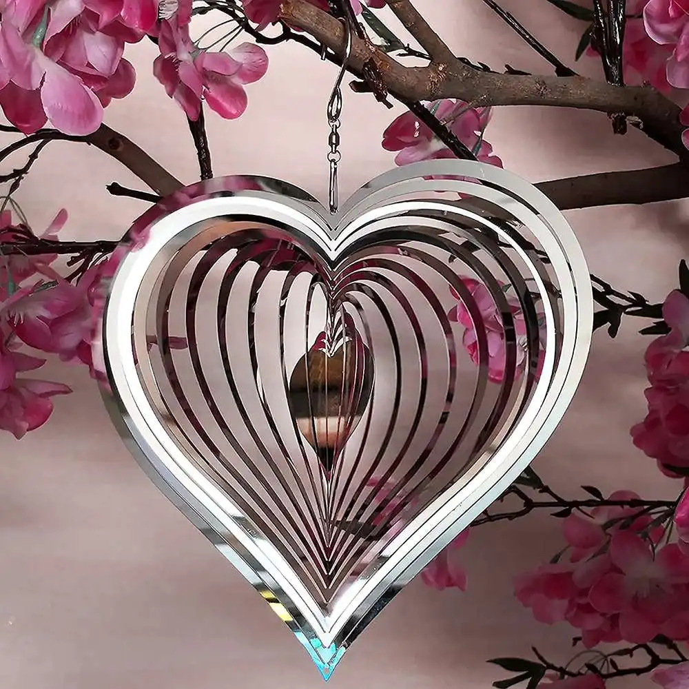 Вращающийся на ветру садовый декор, 3D скульптуры в форме сердца из...
