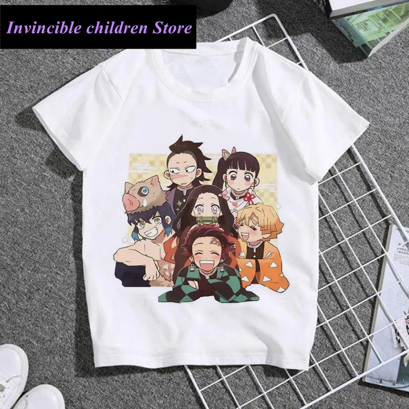 Футболки Kimetsu No Yaiba, костюм для маленьких девочек с дьявольск...