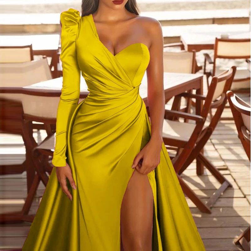 Вечерние платья на одно плечо, плиссированные Коктейльные халаты с разрезом, элегантные облегающие деловые платья для матери невесты и выпускного