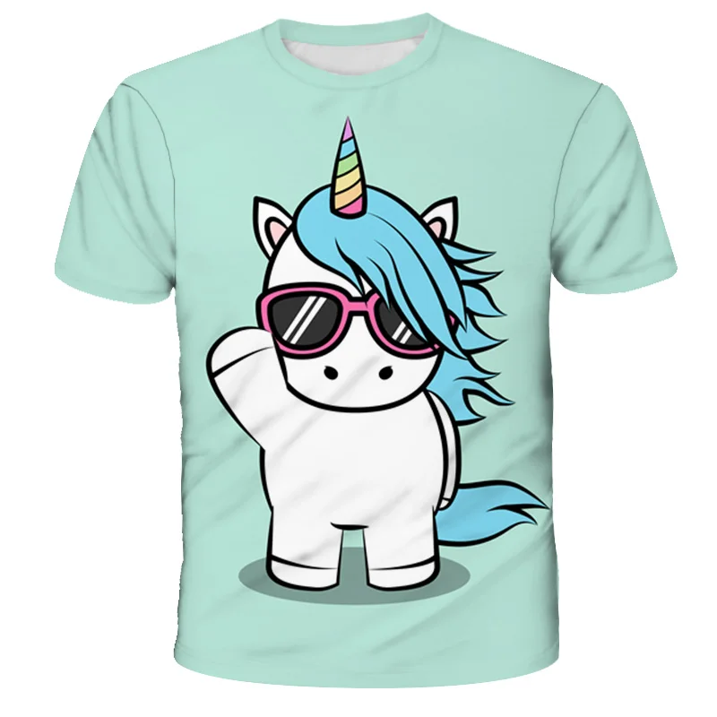 Футболка с единорогом, летняя футболка, мультяшная 3D-печать, мульт...