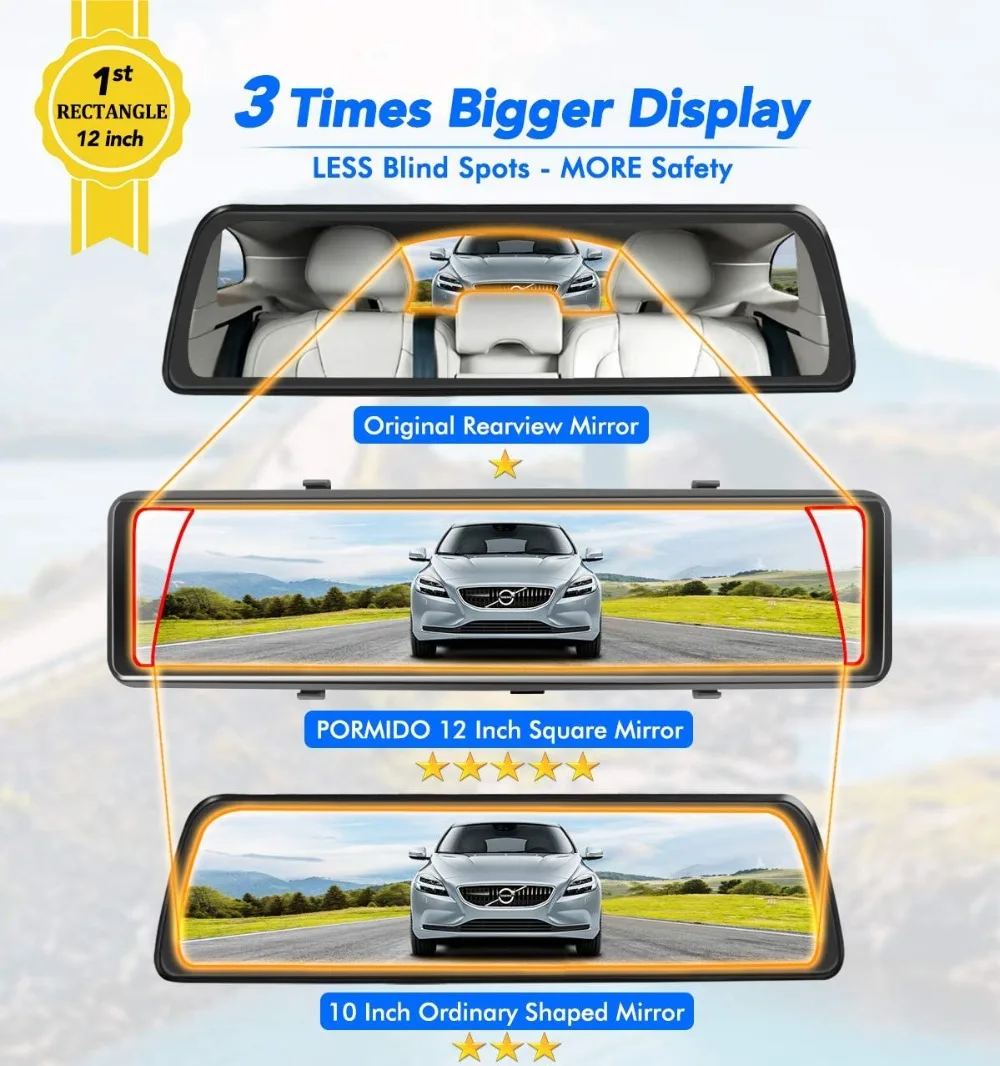 12 "полный сенсорный экран супер широкоугольный потоковый медиа вид заднего вида