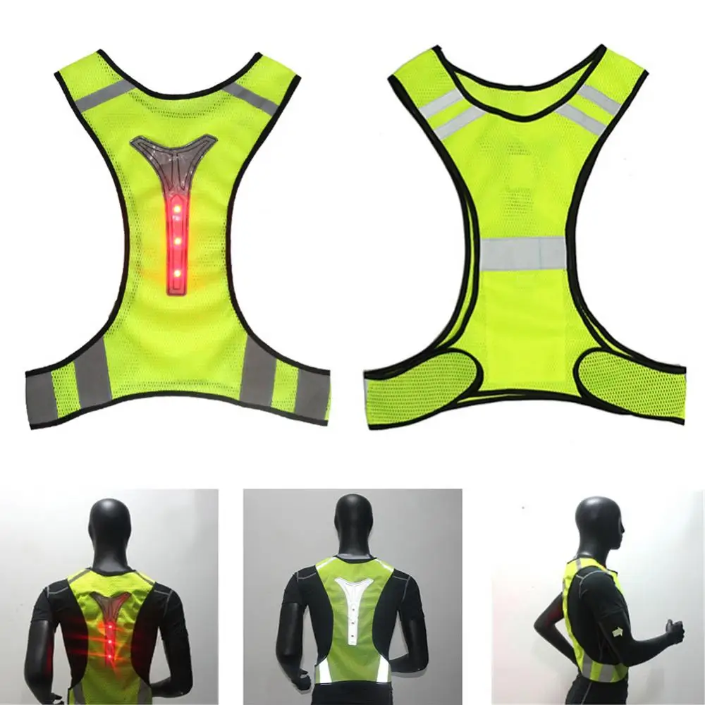 Унисекс светодиодный светоотражающий жилет ультра-тонкие дышащие Спорт на открытом воздухе ночное время езды на велосипеде, бега Регулируемый Безопасность Предупреждение куртка