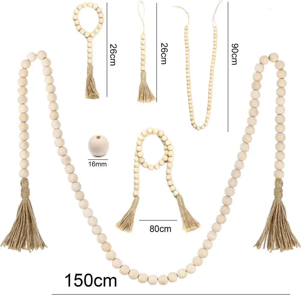 Талисман буддистская деревянная гирлянда из бусин однотонные настенные безделушки в богемном стиле деревенские бусины с кисточками подвески для фермерского дома