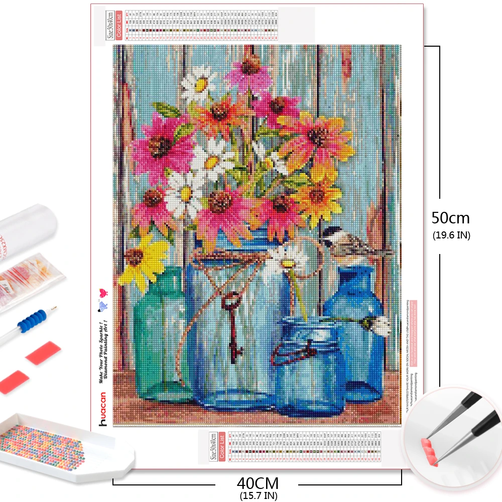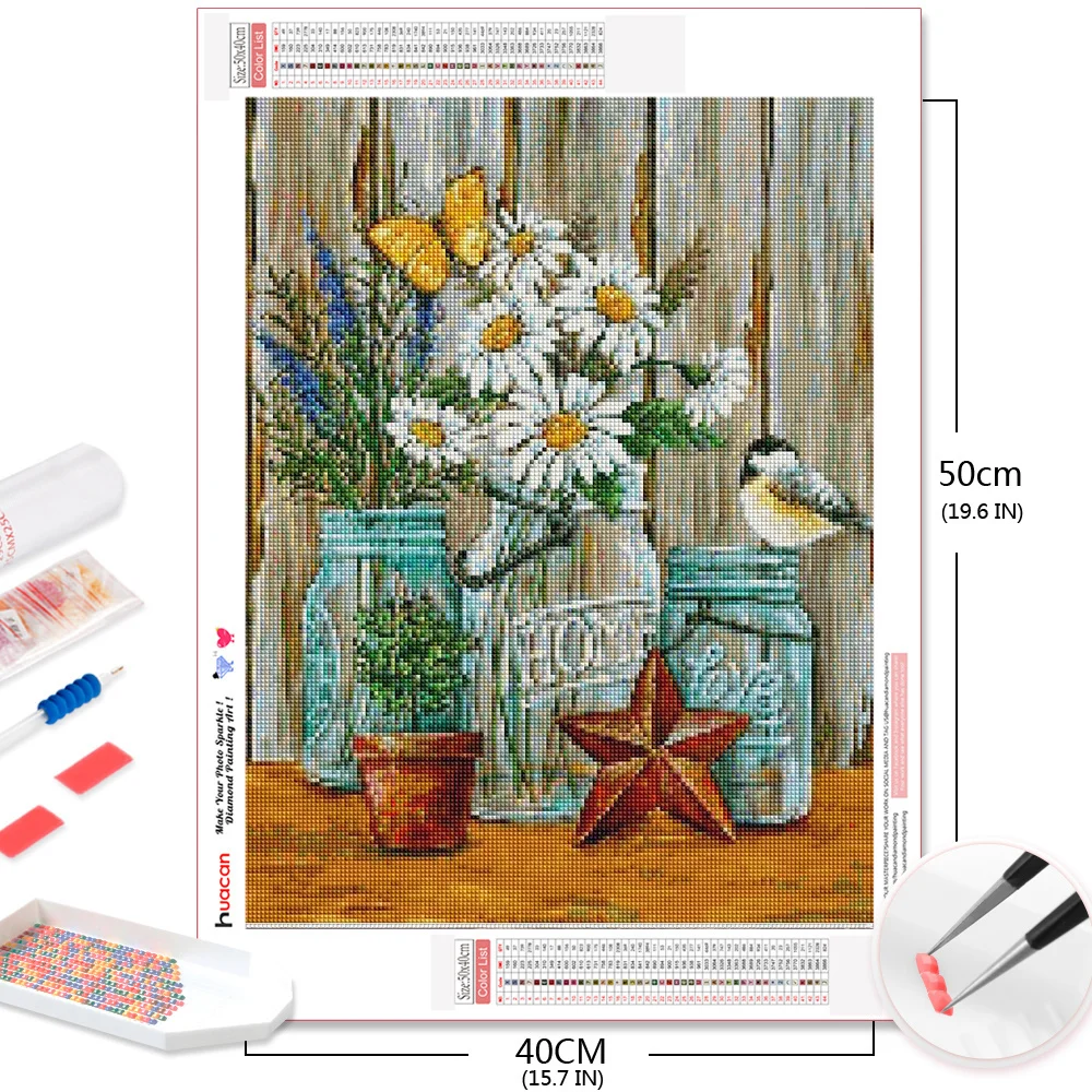 Алмазная 5d картина HUACAN с цветами, алмазная вышивка, ромашки, картины Стразы, мозаичный Декор для дома