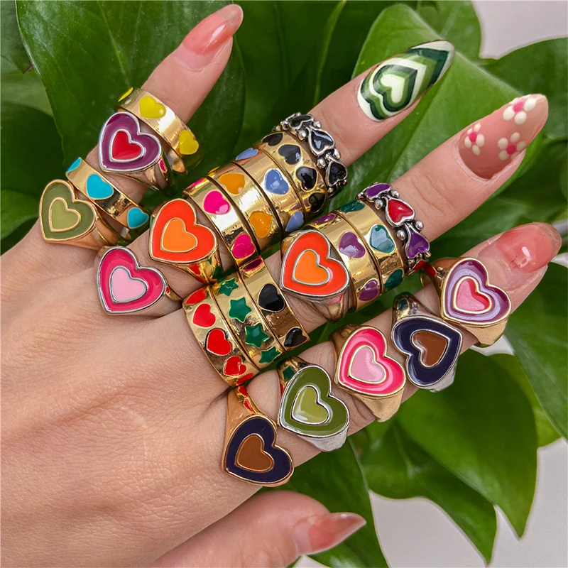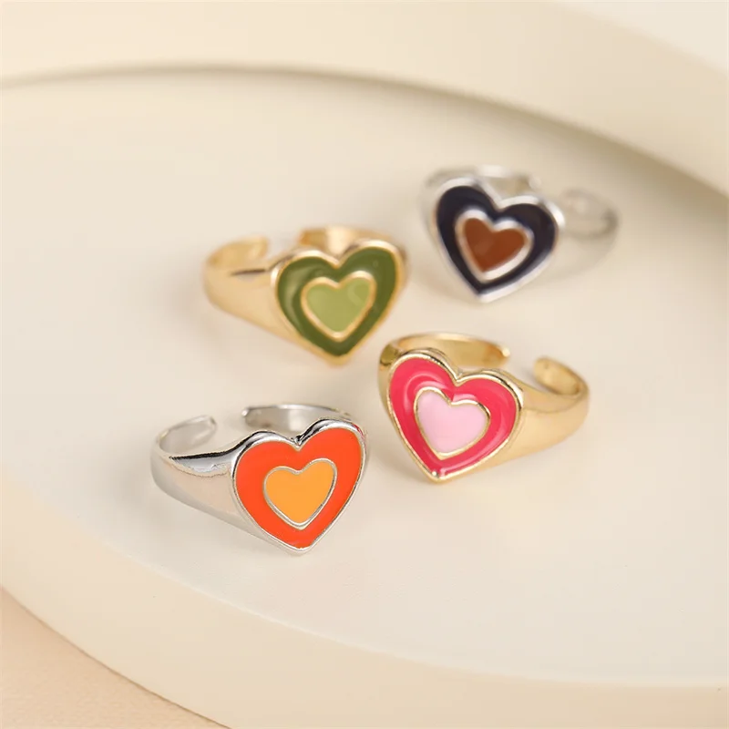 Массивное кольцо Инь разноцветное сердце любовь для женщин и девушек, золотого и серебряного цвета, металлическое кольцо под палец модные праздничные ювелирные изделия