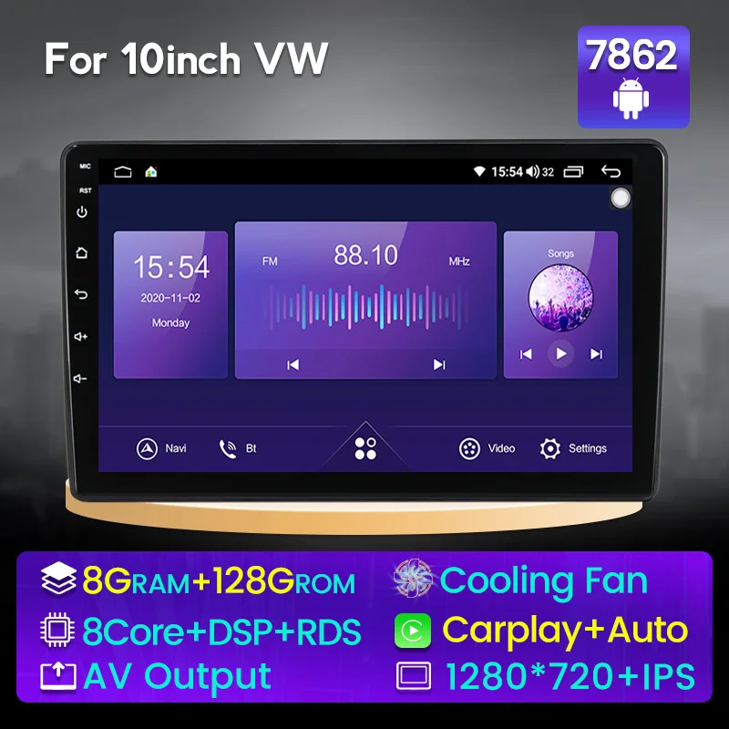 10 дюймовый вентилятор охлаждения Android 11 8 + 128G Автомобильная аудиосистема стерео для VW Volkswagen Golf Polo skoda rapid GPS навигация IPS DSP 4G WIFI