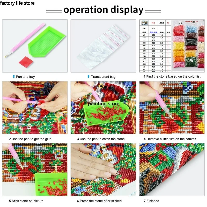 Посылка включает в себя: полностью сверлильный алмаз, холст, инструменты