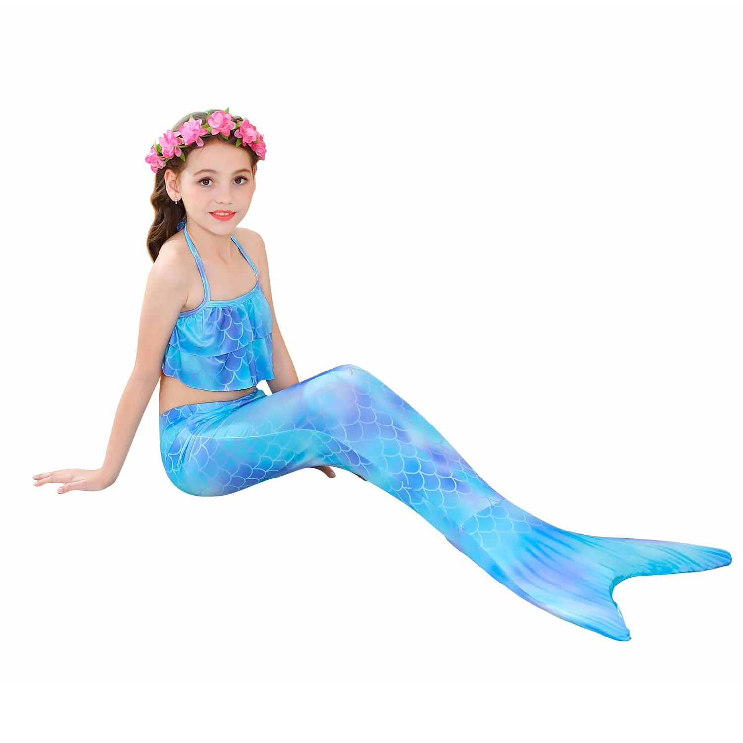 Комплект из 3 предметов для девочек; Костюм Русалочки для костюмированной вечеринки; Детский купальный костюм «рыбка»; Купальный костюм; Детский купальник-бикини