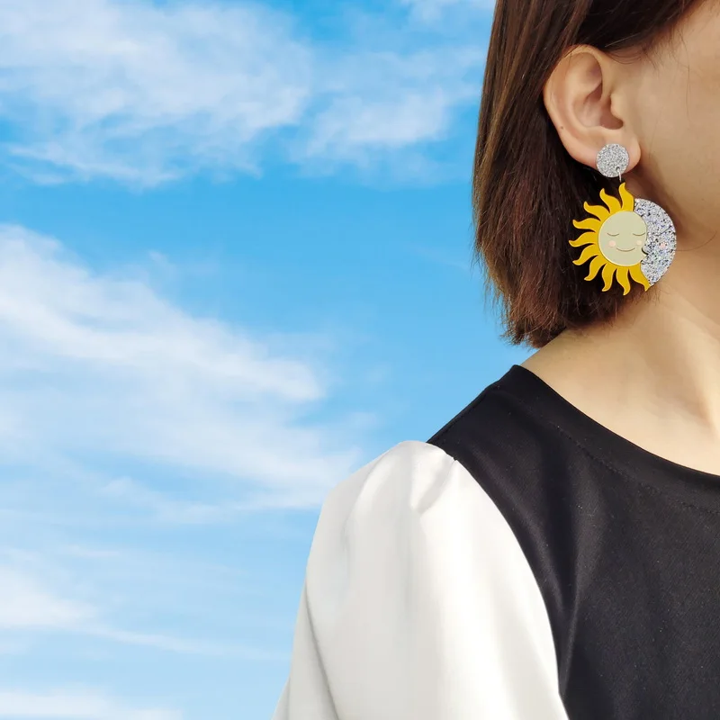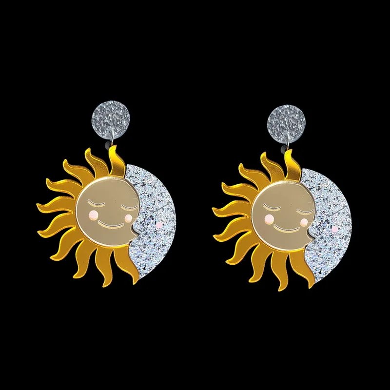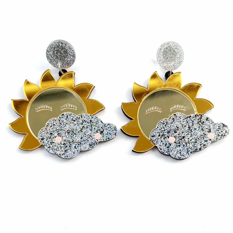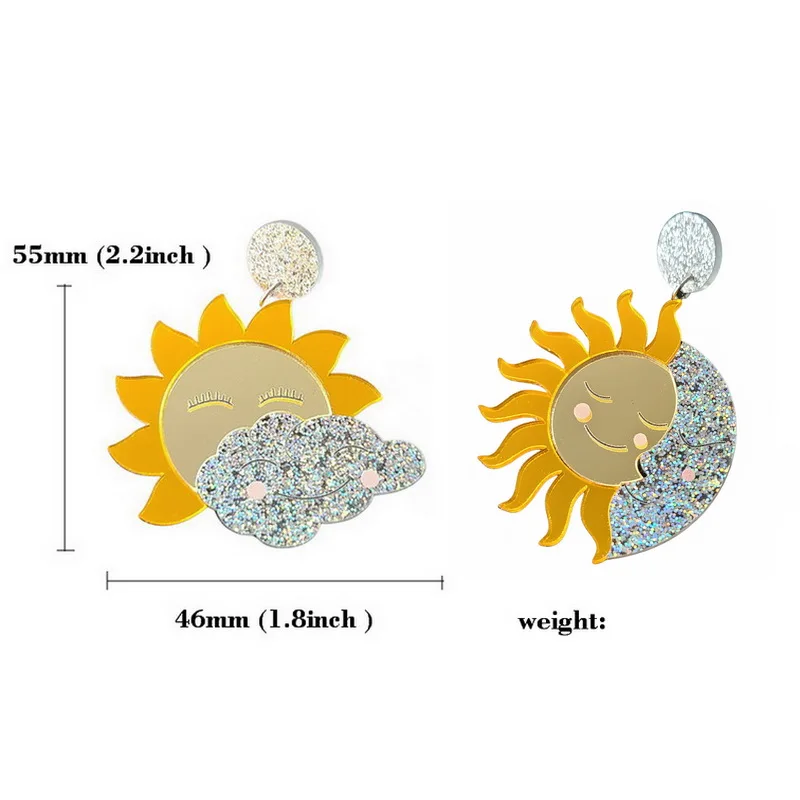 Новое поступление, небесно-голубые зеркальные золотые блестящие улыбки, лицо, солнце и луна, облако, лазерная резка, переливающиеся акриловые серьги для женщин, ювелирные изделия