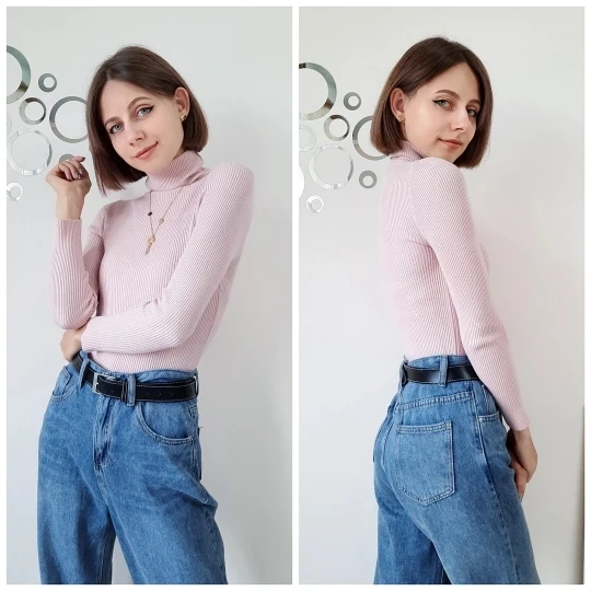 Свитер UHYTGF, Женский пуловер с высоким воротником, вязаные осенне...