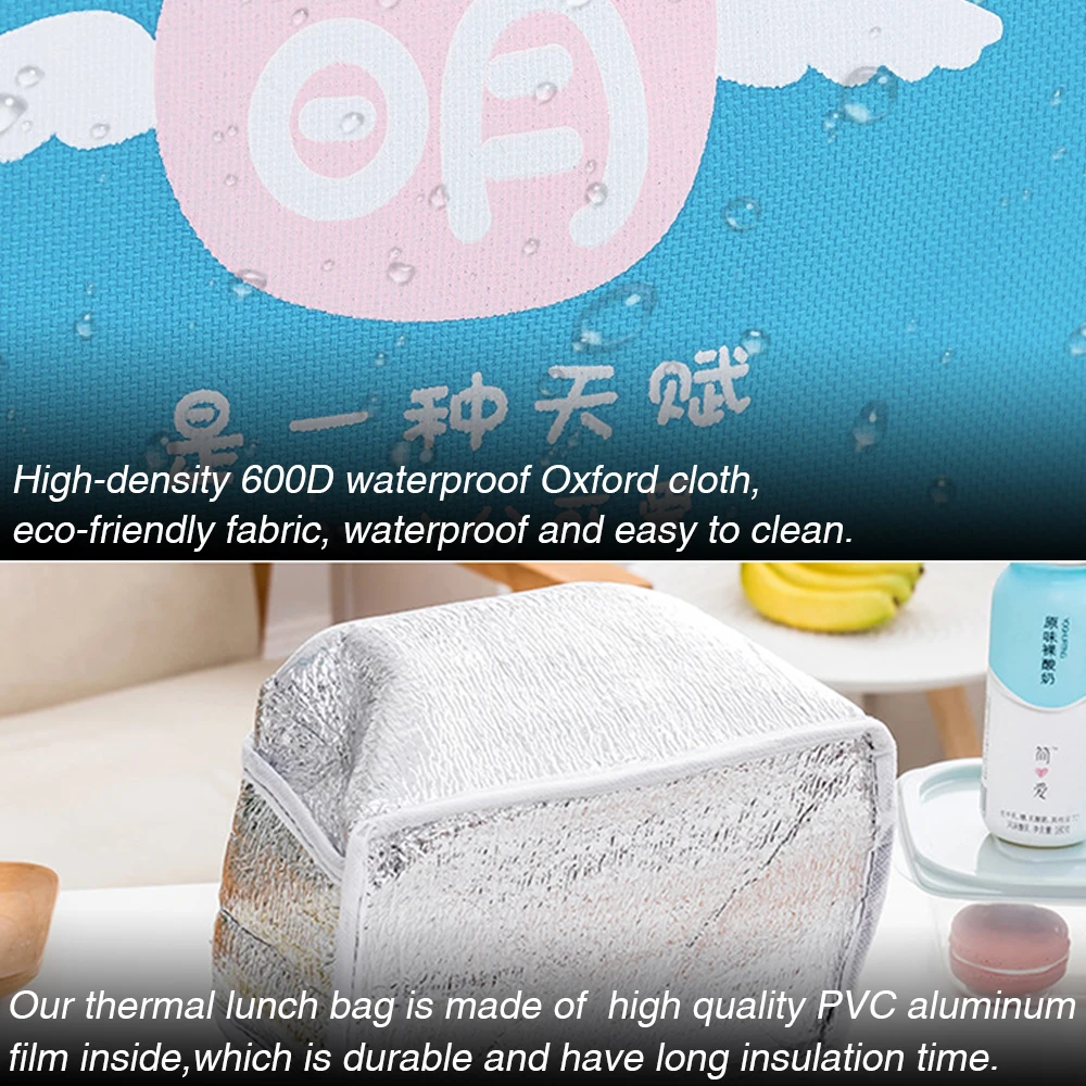 Опишите: милая сумка для обеда с героями мультфильмов для женщин и девочек, детская термоизолированная сумка для обеда, сумка для пикника, сумка для бутылки молока.