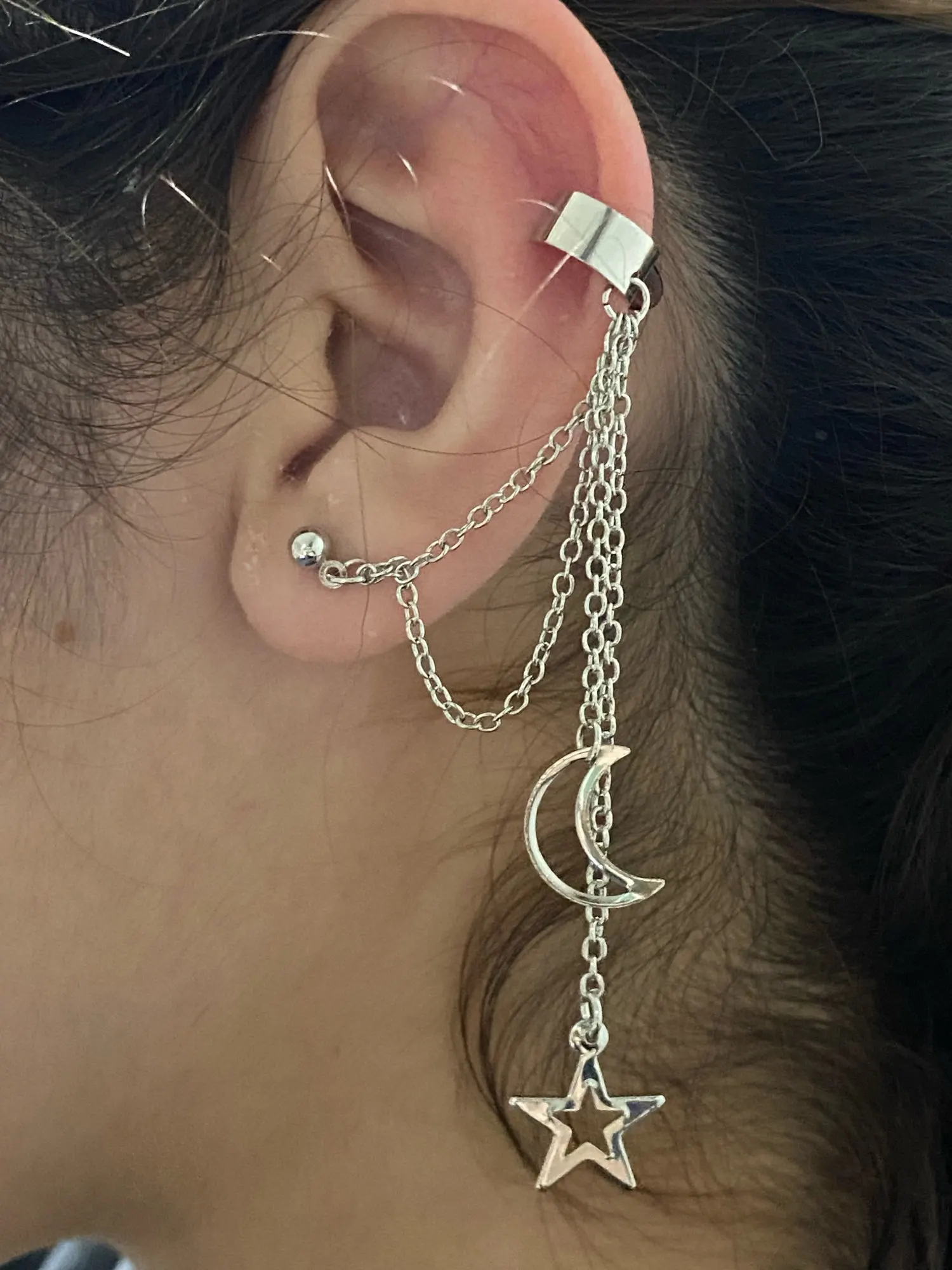 2021 Модные клипсы в форме звезд и Луны, серьги-Крючки для ушей индивидуальные металлические клипсы, Двойные серьги, Женские Ювелирные изделия для девочек