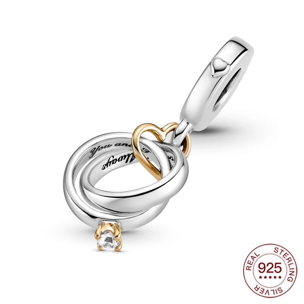 Женское двухцветное обручальное кольцо Pandora, серебро 925 пробы