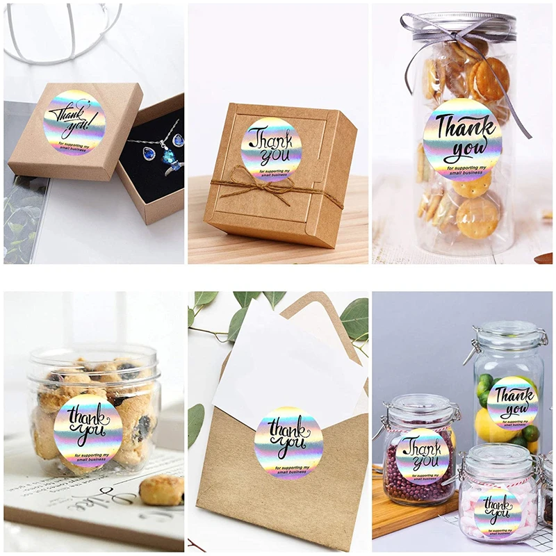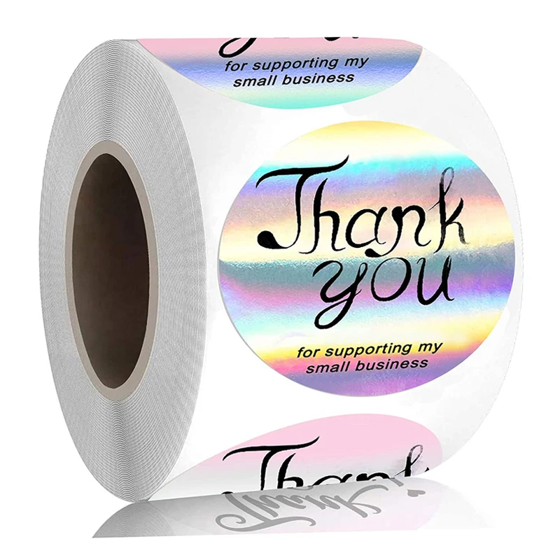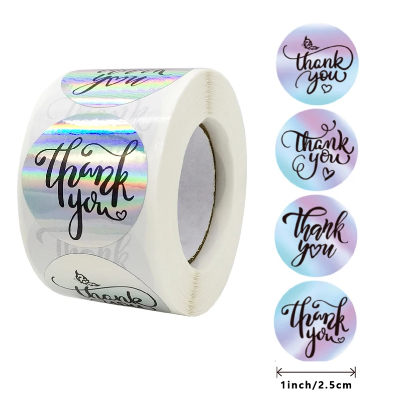 Новые радужные лазерные наклейки Thank You, 1 дюйм, маленькие наклейки для бутиков, упаковочные принадлежности, 500 шт.рулон