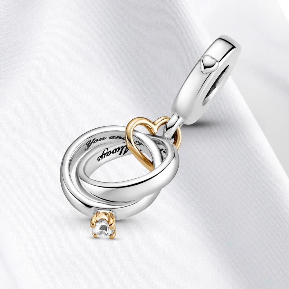 Женское двухцветное обручальное кольцо Pandora, серебро 925 пробы