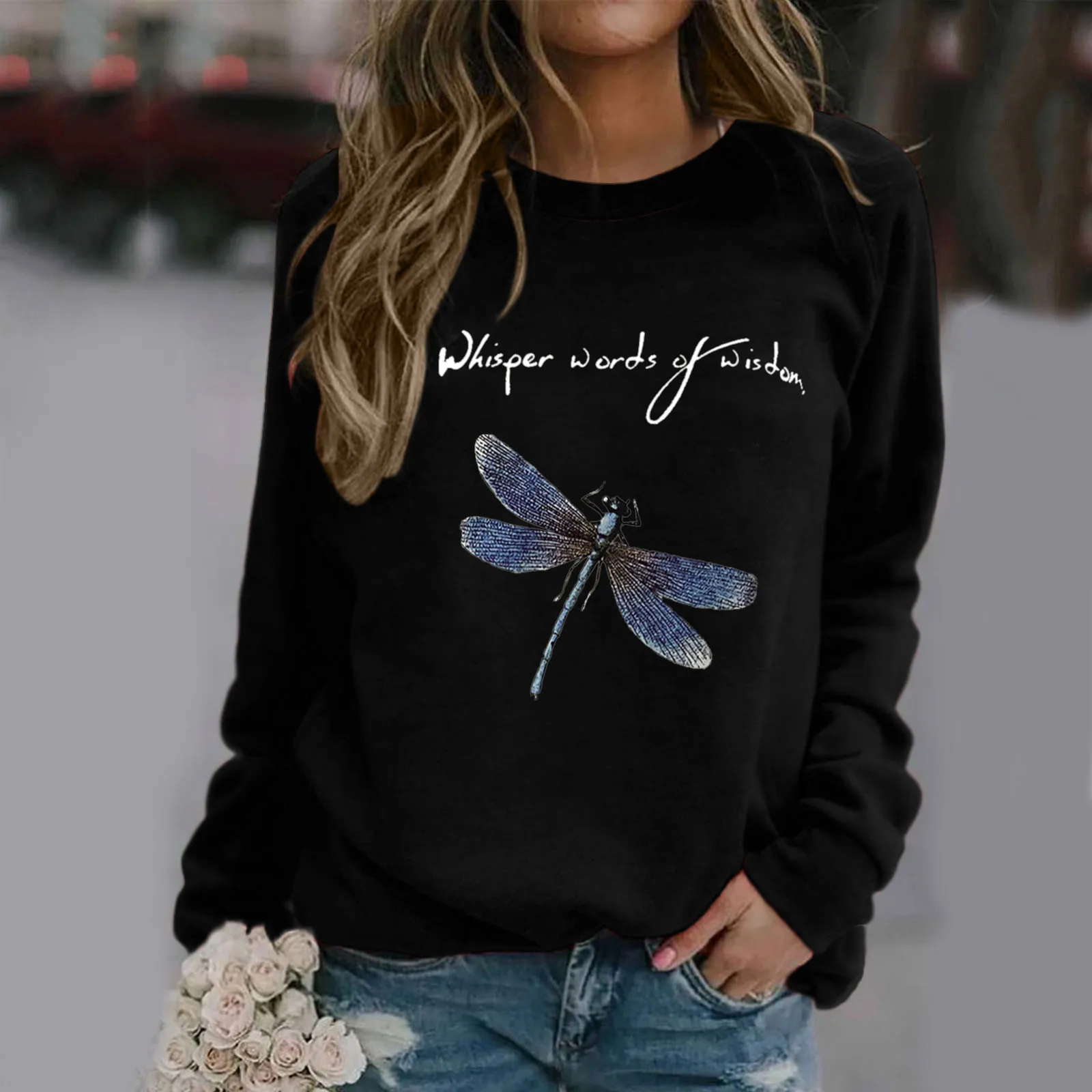 Женский Повседневный Свитшот со стрекозой, Свободный пуловер с круглым вырезом и длинным рукавом, базовая одежда на осень, 2021