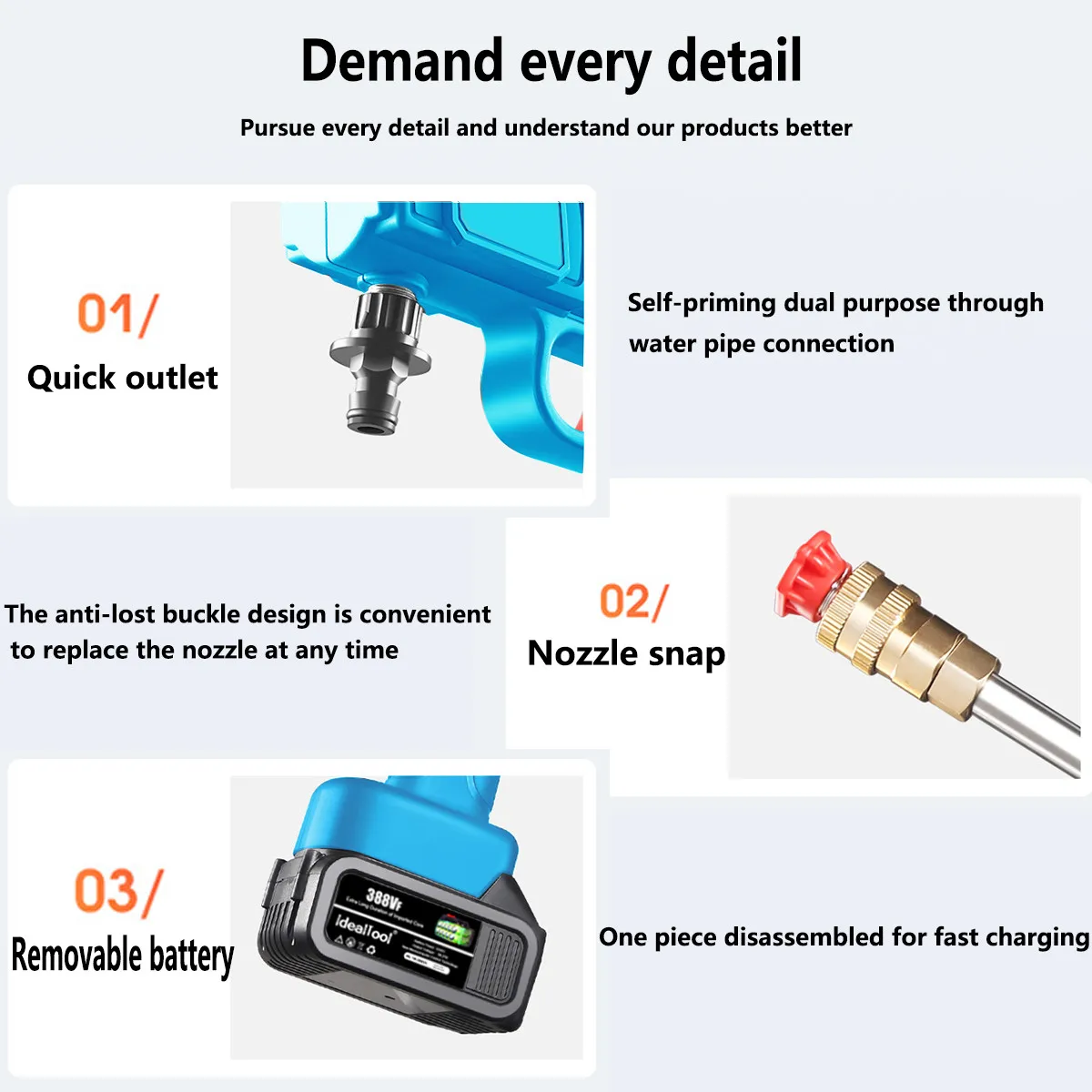 ● Его можно использовать в качестве моющего пистолета для воды, садовых оросительных инструментов.