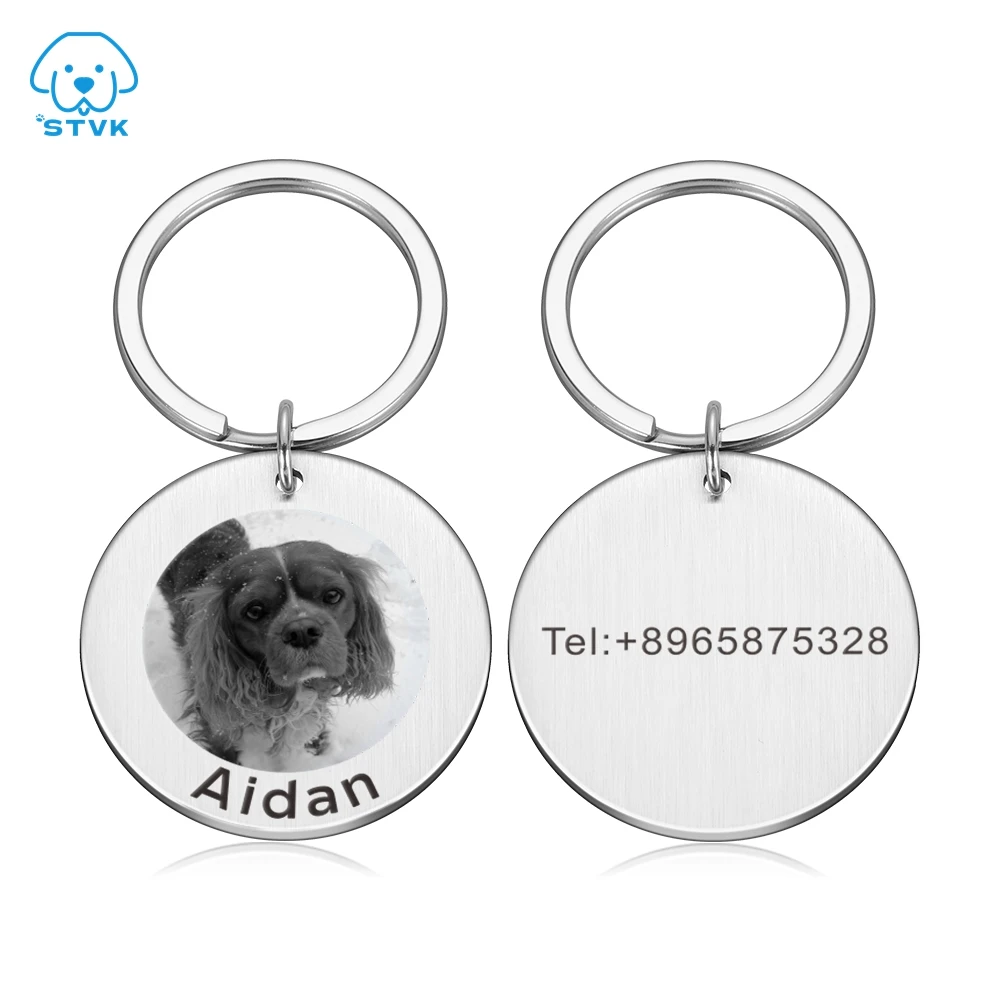 Бирка для собаки с бесплатной гравировкой, фото для щенка, кошки, котенка, ошейника для собак, аксессуары для имени собаки, фото бирки на заказ, из нержавеющей стали