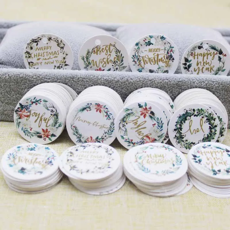 100 шт., новогодниеНовогодние белые бирки для упаковки подарков