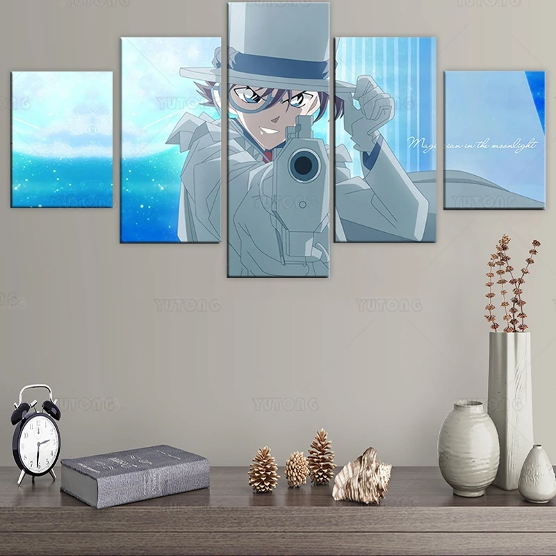 Картина на холсте, настенные художественные плакаты, 5 панелей, аниме мальчик, детектив, Конан, мультфильм, современное искусство, домашний декор