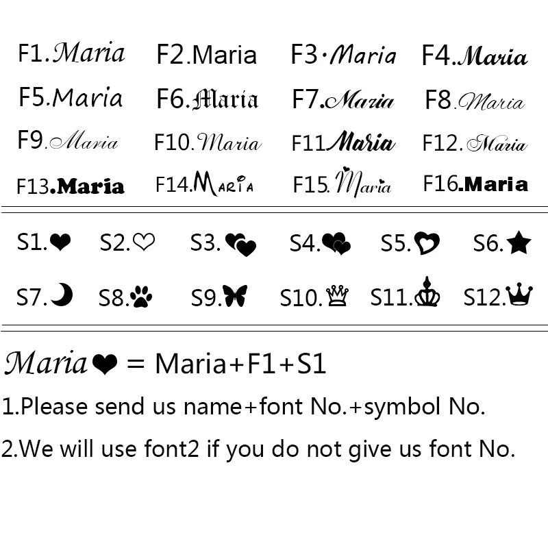 3. Если вы хотите выбрать шрифт и символ, пожалуйста, сообщите намНомер шрифта.ИСимвол № ..