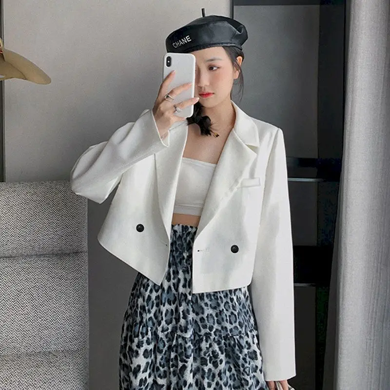 Женский Тонкий Блейзер с коротким рукавом, белый пиджак оверсайз в ...