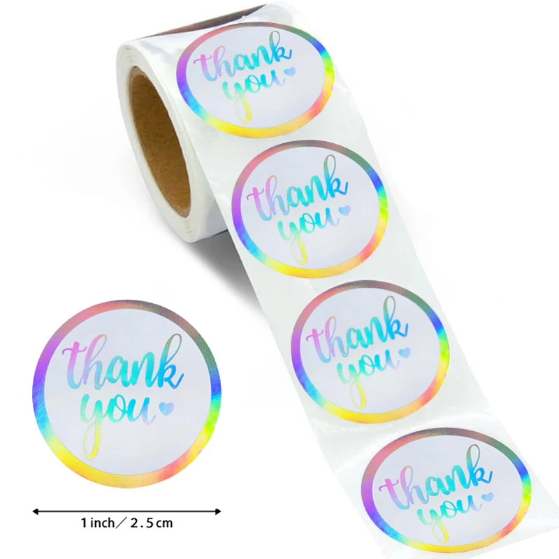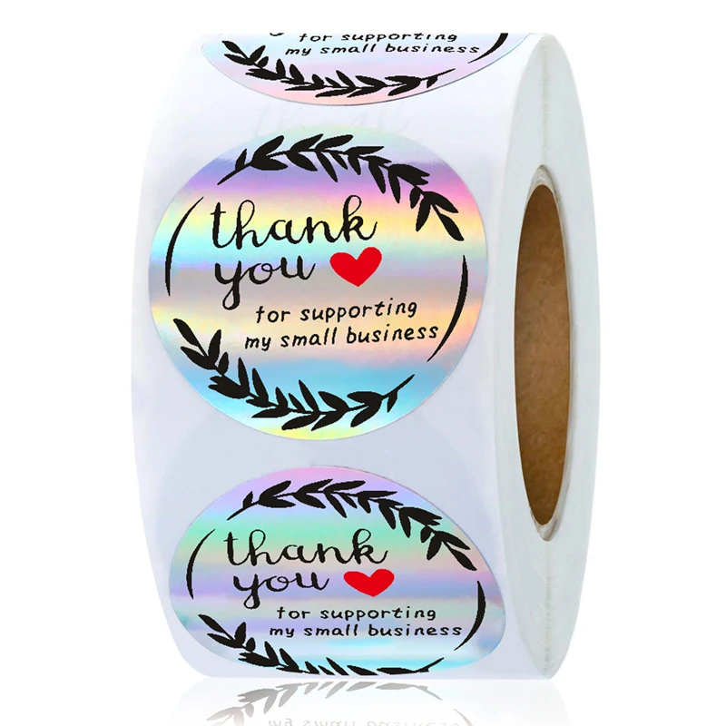 1 дюйм. Лазерные наклейки Thank You для малого бизнеса голографические серебряные клейкие этикетки для сумок коробок конвертов почтовых отправлений в подарок 500 шт.