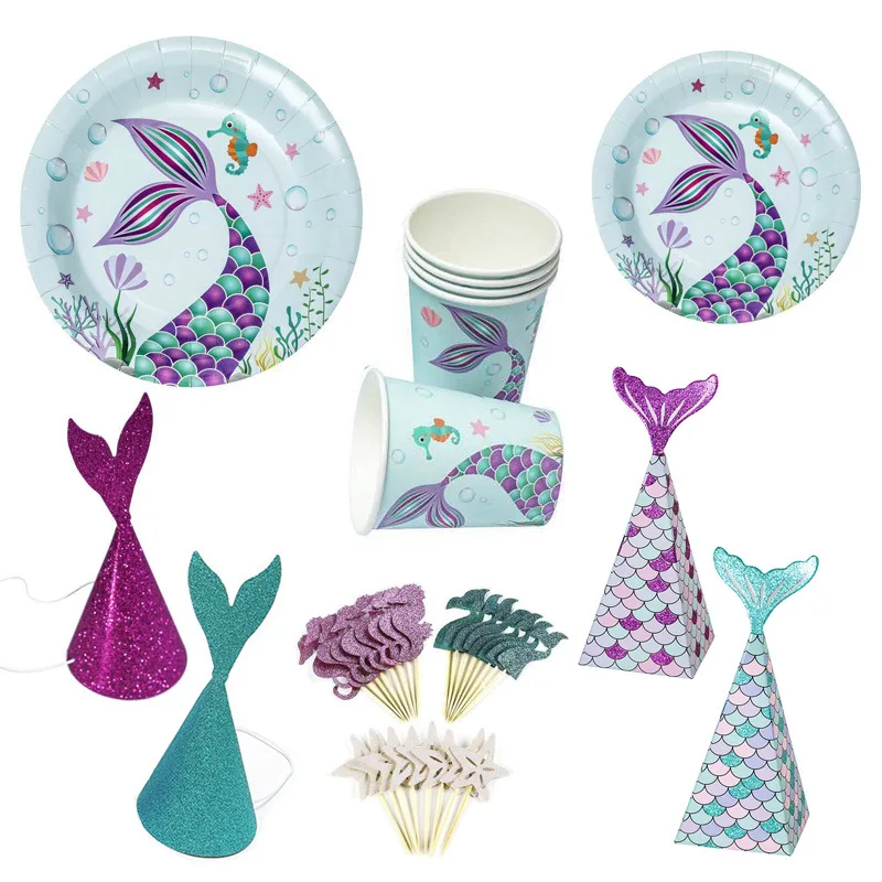 Тема русалки баннер чашка тарелка шляпа набор одноразовой посуды дл...