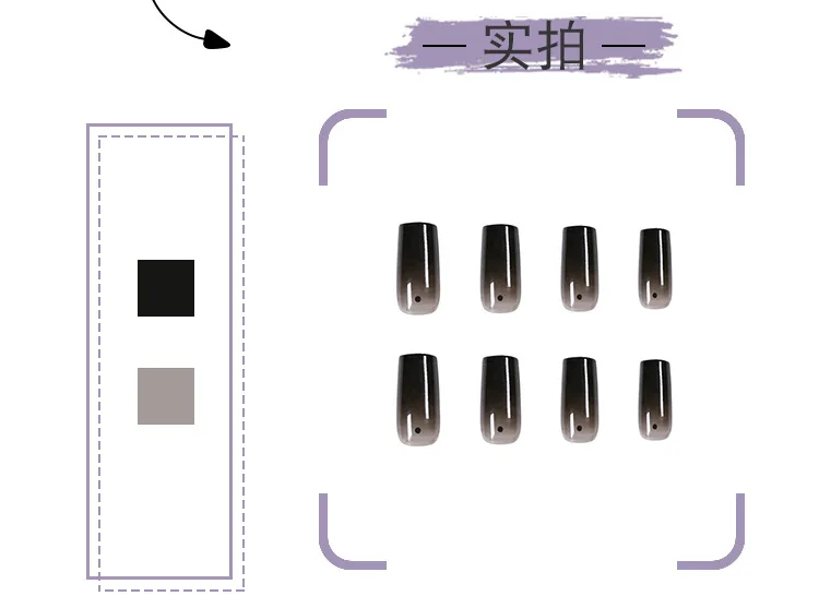 24 шт. градиентные черные патчи для ногтей тип клея съемный длинный абзац Модный маникюр сэкономить время накладные ногти патчи SANA889