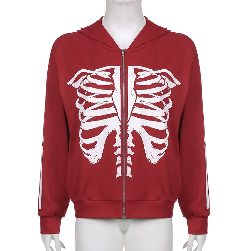 Толстовка Женская в стиле Харадзюку, на молнии, с принтом скелета