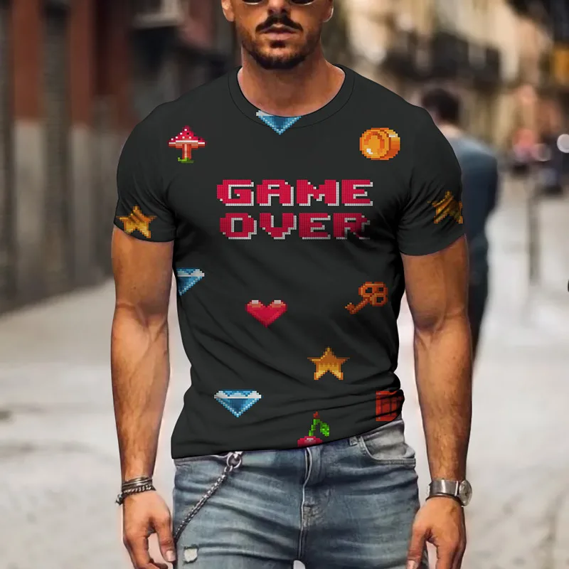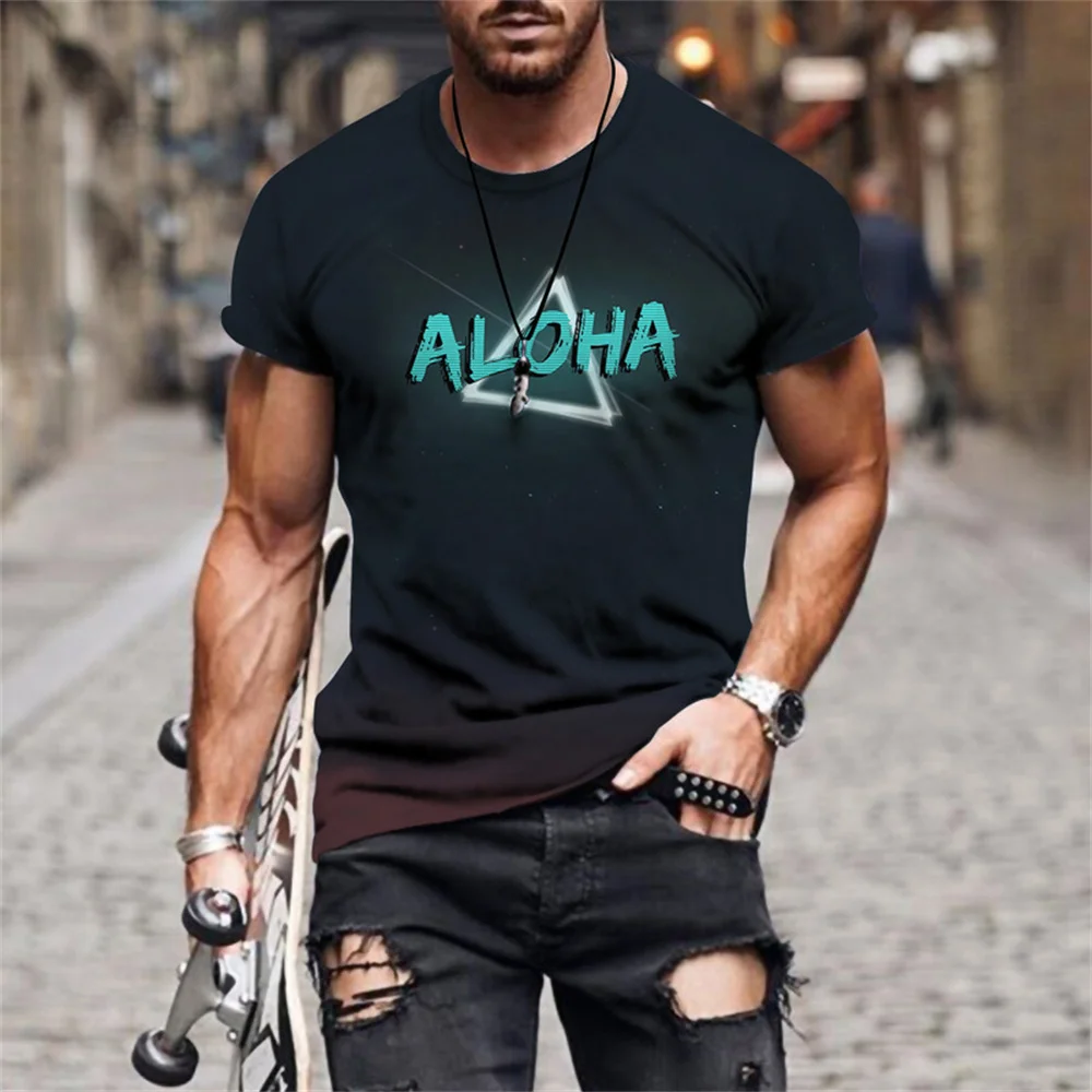 Мужская летняя футболка с буквенным 3D-принтом, модная повседневная Уличная футболка с короткими рукавами, 2021